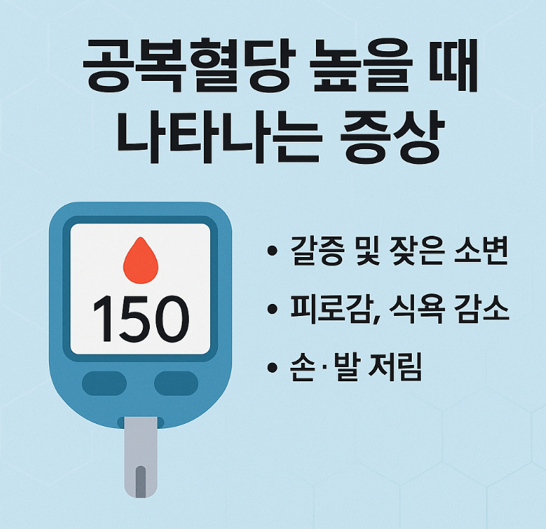사실 많은 사람들이 공복혈당이 조금 높은 상태에서는 별다른 증상을 느끼지 못합니다. 하지만 혈당 수치가 140~150mg/dL 이상으로 올라가면 아래와 같은 증상이 나타날 수 있습니다.