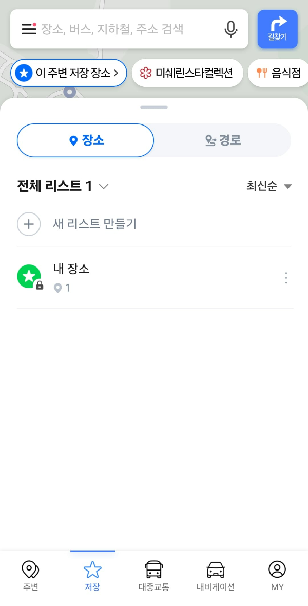 1. ‘저장’ 탭에서 리스트나 장소 선택