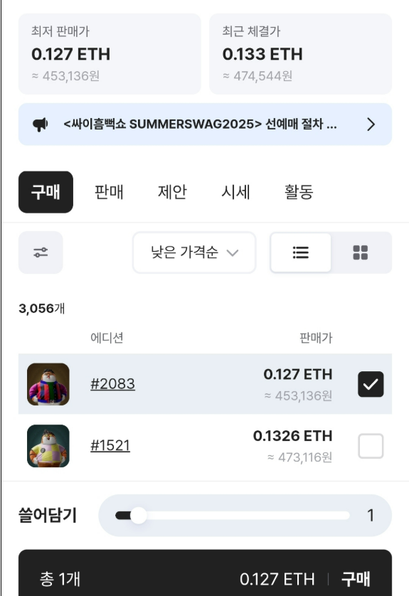 - 신청 안 한 다른 NFT는 계속 사고팔 수 있어요!