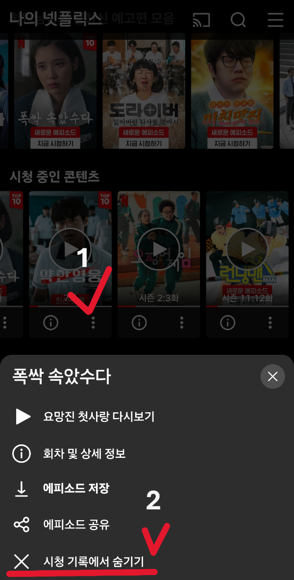 이미 끝까지 본 콘텐츠가 "계속 시청하기"에 떡하니 버티고 있어서, 매번 그 얼굴을 다시 마주쳐야 한다면… 평화를 위해 지웁시다.