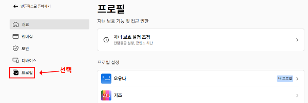 2. 오른쪽 상단 프로필 아이콘 클릭 → [계정] 선택 → 내프로필 선택