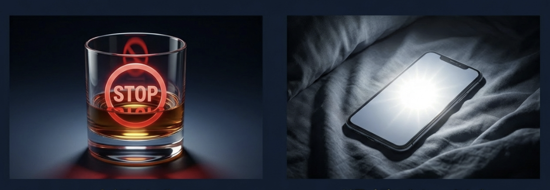 술을 마시고 자면 빨리 잠드는 것 같지만, 알코올은 램 수면을 강제로 억제합니다. 술 마신 다음 날 유독 머리가 멍하고(Brain Fog) 감정 조절이 안 되는 것은 뇌가 밤새 '데이터 정리'를 거부당했기 때문입니다.