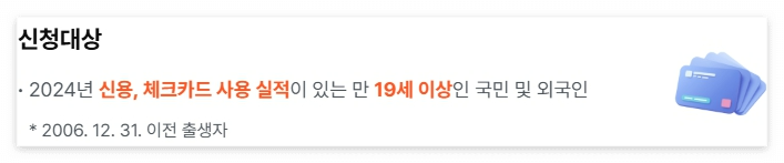 - 만 19세 이상, 2024년 카드 소비 실적이 있는 국민(외국인등록 외국인 포함).
