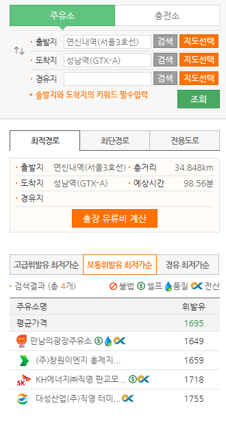 특정 경로를 설정하면 경로상 주유소를 자동으로 표시.