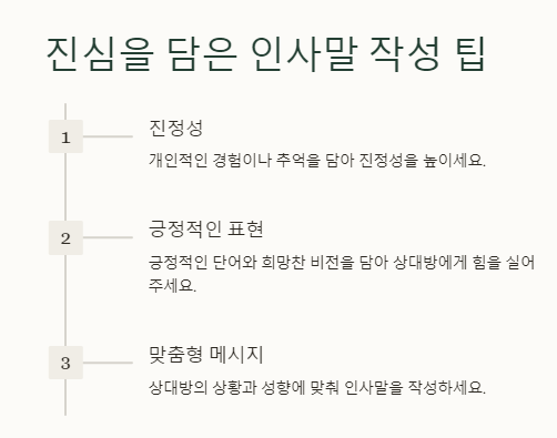 상대방의 상황과 성향에 맞춰 인사말을 작성하세요.