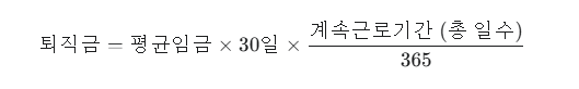 퇴직금은 간단하게 다음 공식으로 계산할 수 있습니다.