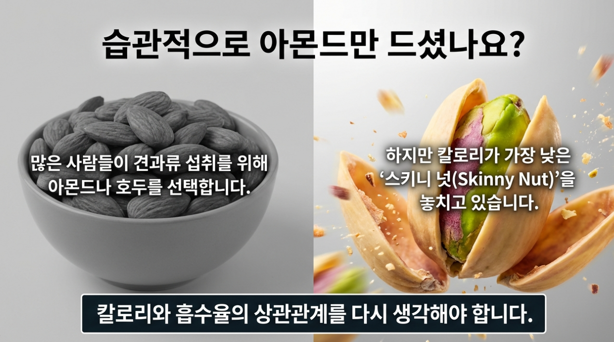 "견과류가 몸에 좋다니까 아몬드나 호두만 집어 먹지 않았나? 미안하지만, 당신이 칼로리와 영양소 흡수율의 상관관계를 몰랐다면, 지금껏 가장 맛있는 '천연 다이어트 약'을 눈앞에서 놓치고 있었던 셈이다."