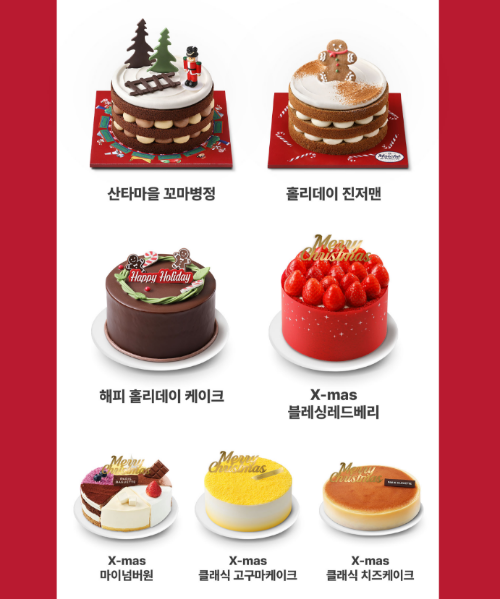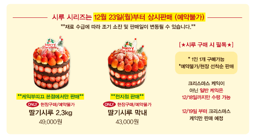 | 성심당 | 12.2 ~ 12.15 | 12.19 ~ 12.25 | 장식 추가, 해피쿠폰 달력 증정 | 전화 예약 | 딸기모짜르트: 31,000 |